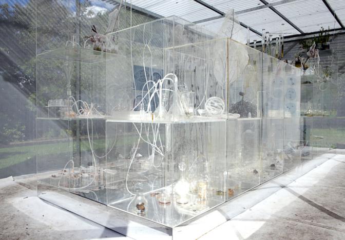 She has an impressive list of exhibitions behind her including a fascinating installation at the 2010 Sydney Biennale ‘Waiting, A Medicinal Garden for Ailing Plants’ which is featured in many of the pictures above. The work consists of a transparent mesh structure echoing a botanical glasshouse with medicinal glass vessels containing various plants, fluids and solids.