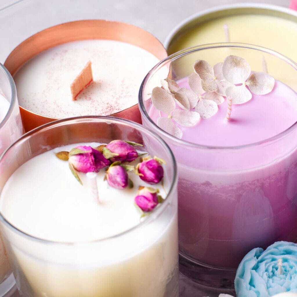 These candles are easy to make and can be personalised with decorative elements like pressed flowers, biodegradable glitter and crystals, adding a unique charm.