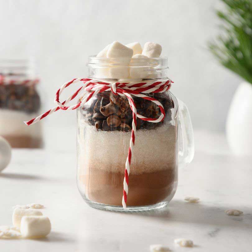 Layered with rich cocoa, marshmallows and chocolate chips, these jars are a sweet treat for mums to enjoy.