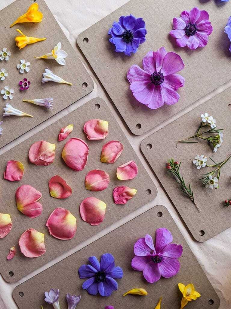 Andrea and I were messaging each other after she posted these, and we discussed the lines which have come up on some of the blooms. This certainly does happen with delicate petals but if you’d like to avoid them, be sure to use some paper between the sheets of cardboard, and try not to tighten the press too much – a firm hold does the trick, with a check and possibly a little more after a week or so 💗🙏