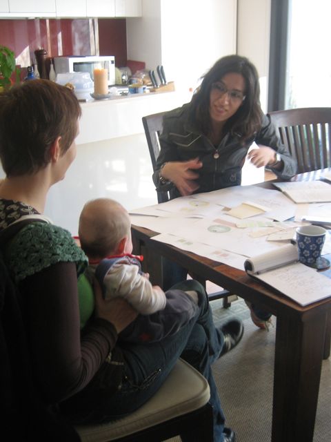 It’s time to start introducing Sow ‘n Sow the business! The designer seed packets are well and truly on the way now – just in time for spring. There are a few minor design tweaks to make, and a couple of quotes to be sought before we go to print but the packets look gorgeous. Needless to say…I’m really excited! Here’s some pictures of today’s meeting with the wonderful, generous, fabulous designers which make up The Mangrove Studio – Rochelle and Jodi (with their apprentice baby Flynn). There’s me at the bottom pretending to look hard at work. Thanks for posing for me ladies!